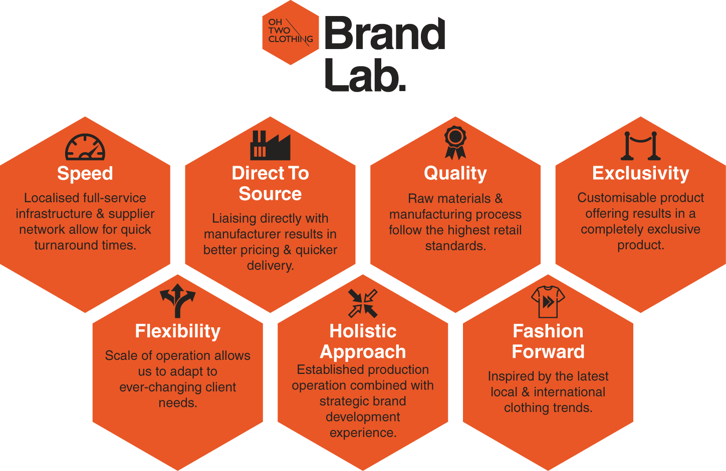 With over 25 years combined experience in corporate marketing, advertising and clothing manufacturing, we have a unique blend of marketplace knowledge that allows us to provide a value added service to customers looking to build more than just a clothing label.